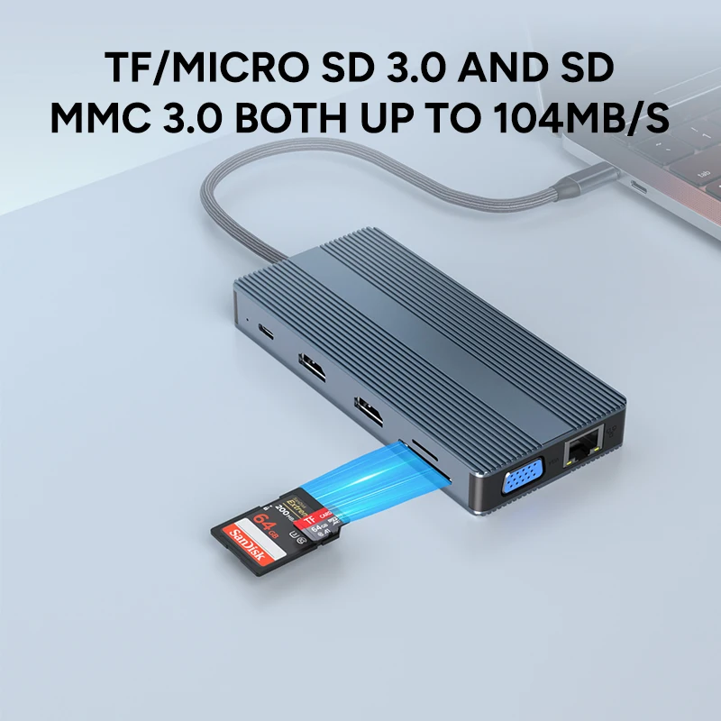 12 in 1 HDMI 4K 60Hz USB C PD Fast Charge 100W With 1080P VGA 1000M RJ45 Audio Type C 30 TF SD Aluminum Fashion Docking Station